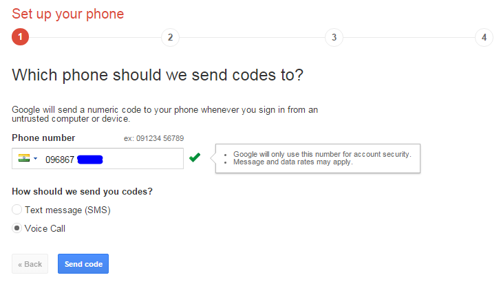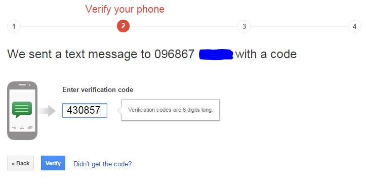 - Confirm your phone number and choose how would you like to receive the verification code.