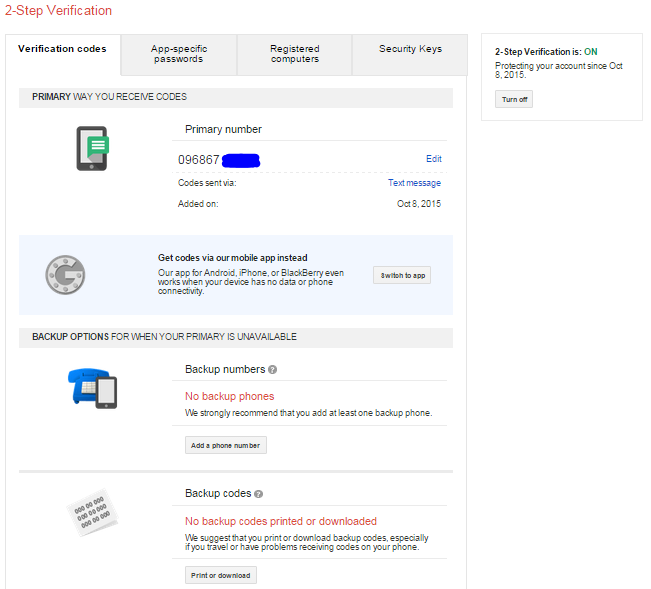 After you have confirmed for the 2-step-authentication, Google will send you additional protection features.